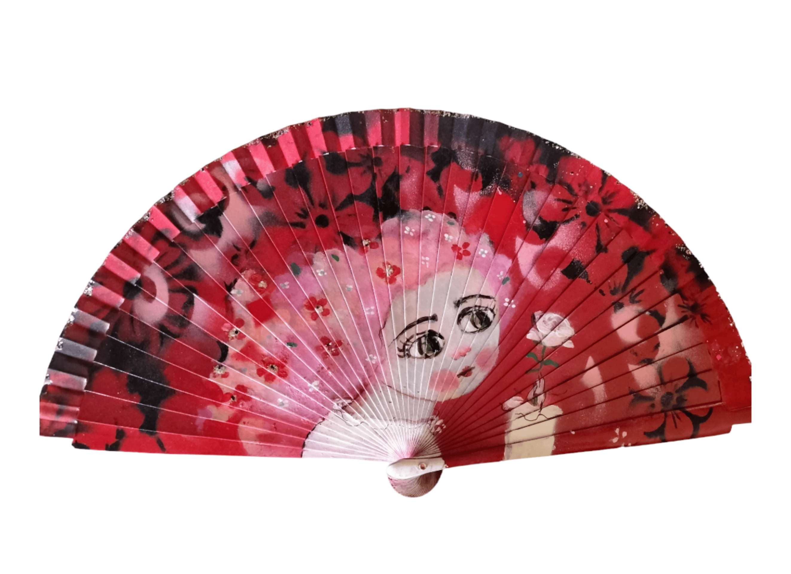 Abanico rojo niña con flores